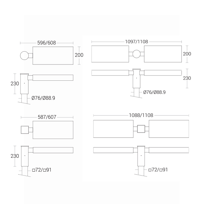 Mounting : Extruded aluminium (grade 6063) suitable for mounting on Ø76 / Ø88.9 / 72mm Square Pipe / 91mm Square Pipe.